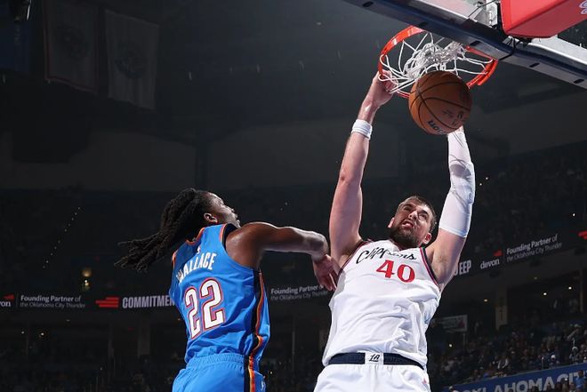 本场比赛中,快船的先发中锋伊维察-祖巴茨(Ivica Zubac)的表现令人大跌眼镜。祖巴茨全场出场31分41秒,投篮7中3,罚球6中5,仅得到了11分11篮板3助攻2盖帽的数据,其中还包括了3个前场篮板,还有2次失误和1次犯规,正负值为-14。祖巴茨在攻防两端的表现都令人有些失望,他的得分能力并不理想,他在对手内线并没有发挥出自己的实力和特点,他也没有什么其他方面的贡献。除此之外,祖巴茨在防守端也是显得有些软弱,不仅在内线防守方面显得有些吃力,而且他在移动速度方面的短板也是肉眼可见的。总体来看,祖巴茨在场上的效果非常糟糕,可以说是被雷霆各种针对。在对手先发中锋以赛亚-哈尔滕施泰因(Isaiah Hartenstein)缺阵的情况下,祖巴茨也没有办法起到更大的作用。